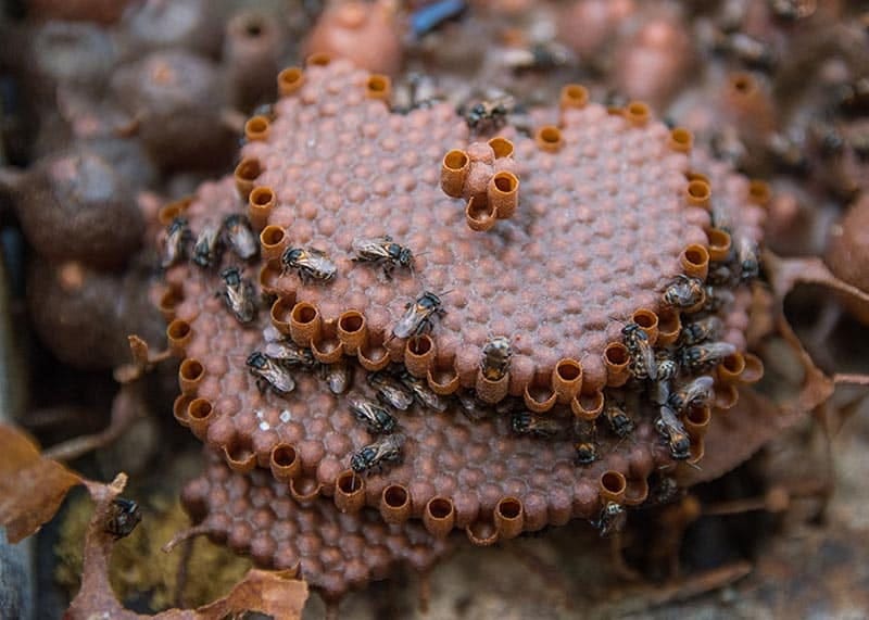 Diferentemente de outras abelhas nativas da Amazônia, como a uruçu-amarela e a uruçu-cinzenta, a abelha-canudo não inclui barro na formulação de sua própolis. “Isso confere um produto livre de contaminantes que podem ser trazidos pelo solo”, explica o pesquisador da Embrapa Daniel Santiago, um dos autores do artigo.