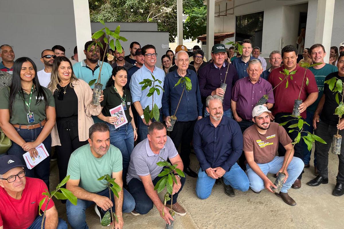 O Projeto Arranjos Produtivos voltou, na sexta-feira (24), a Vila Pavão, no noroeste capixaba. Lá, 17 agricultores de base familiar receberam 1.500 mudas de cacau das mãos do presidente da Assembleia Legislativa, Marcelo Santos (União), para contribuir na diversificação das culturas locais. O município tem no café seu maior expoente.