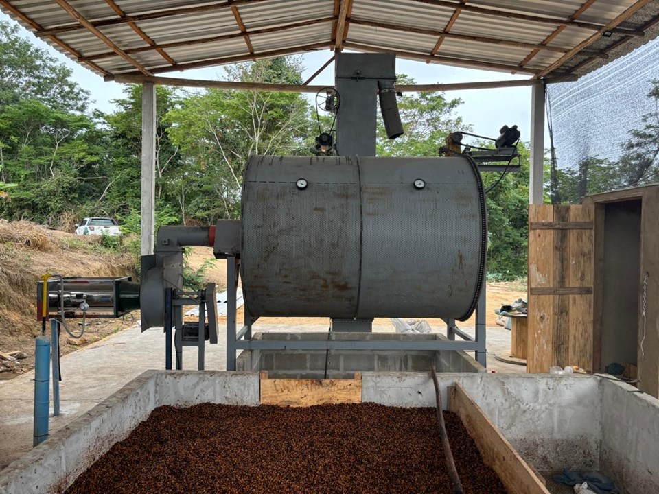 Localizada na propriedade do produtor Noel Antunes, em Santo Antônio do Quinze, a unidade é composta por um secador de café rotativo, cedido pelo projeto, e um queimador a gás. O sistema substitui o uso da palha do café e da lenha, combustíveis comuns nas fornalhas tradicionais, e oferece uma vantagem importante: o controle mais uniforme e constante da temperatura. Essa estabilidade térmica evita o superaquecimento, que pode comprometer o grão, e reduz a ocorrência de defeitos sensoriais.
