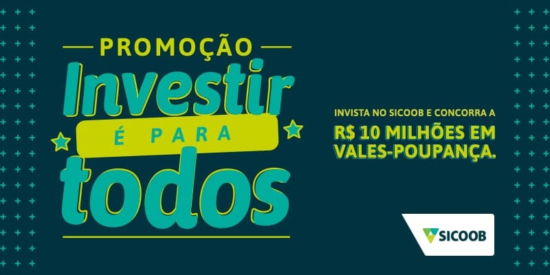 Desde a última quarta-feira (1º), começou a 2ª edição da promoção “Investir é Para Todos” do Sicoob. Neste ano, a instituição financeira cooperativa irá sortear R$ 10 milhões em prêmios, distribuídos em 5.300 vales-prêmio que variam de R$ 1 mil a 30 mil. Podem participar da ação os cooperados e poupadores, tanto pessoa física quanto pessoa jurídica, entre os dias 1º de junho e 31 de julho.