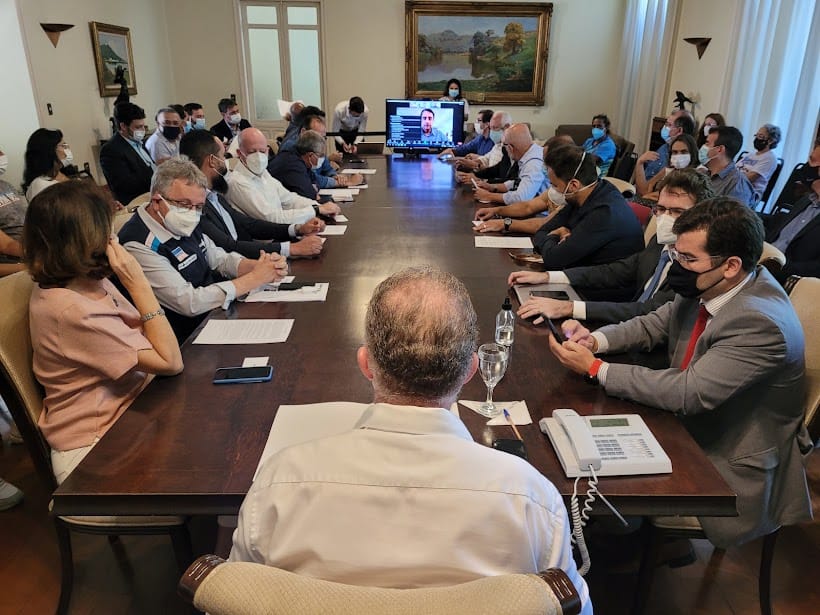 Diante do aumento de casos do novo coronavírus (Covid-19), o Governo do Estado firmou, nesta quinta-feira (27), um Termo de Compromisso com entidades do setor produtivo (federações, associações e sindicatos representantes de segmentos econômicos) visando ampliar as ações de enfrentamento à pandemia no Espírito Santo. O documento foi discutido com representantes das entidades, durante reunião da Sala de Situação de Emergência em Saúde Pública, com a participação do governador Renato Casagrande.