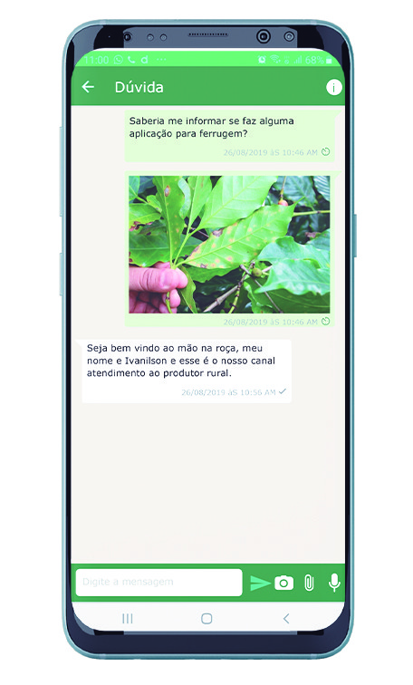 Por meio do “Mão na Roça ”, o associado pode mandar mensagens de texto, áudios, fotos e arquivos em PDF, que são analisados por profissionais capacitados de segunda à sexta-feira, das 7h30 às 17h30, e aos sábados, das 7h às 11 horas. A ideia é garantir o menor tempo-resposta possível para o produtor desempenhar a atividade a distância, pois o propósito da Coopeavi é unir famílias que alimentam famílias.