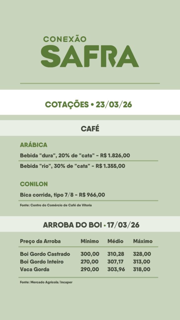Confira as cotações do café, boi e hortifrúti de hoje(23/03), com variações significativas que podem impactar produtores e consumidores.