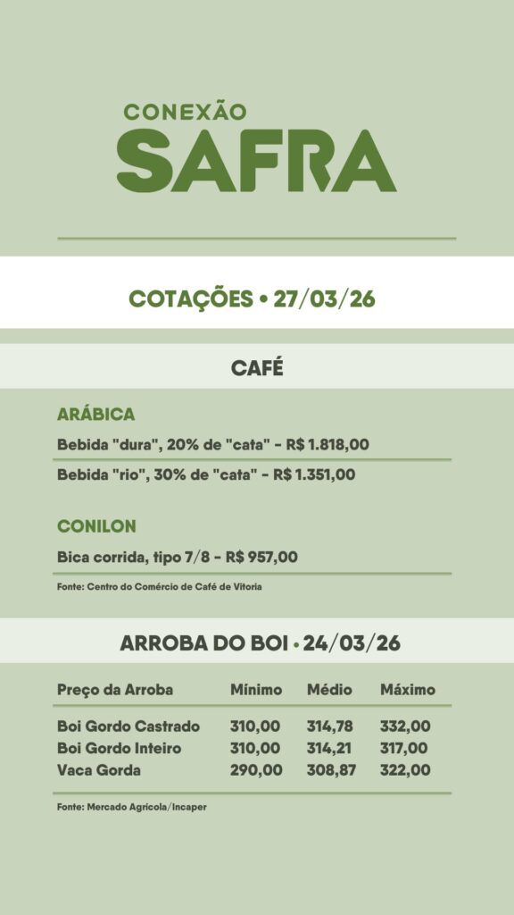 Confira as cotações do café, boi e hortifrúti de hoje(27/03), com variações significativas que podem impactar produtores e consumidores.