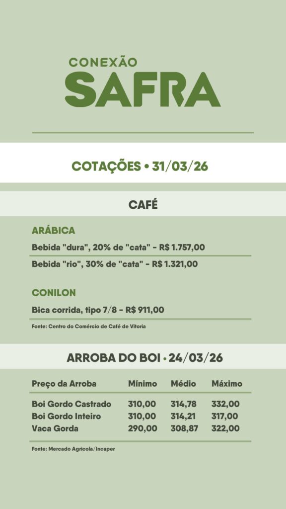 Confira as cotações do café, boi e hortifrúti de hoje(31/03), com variações significativas que podem impactar produtores e consumidores.