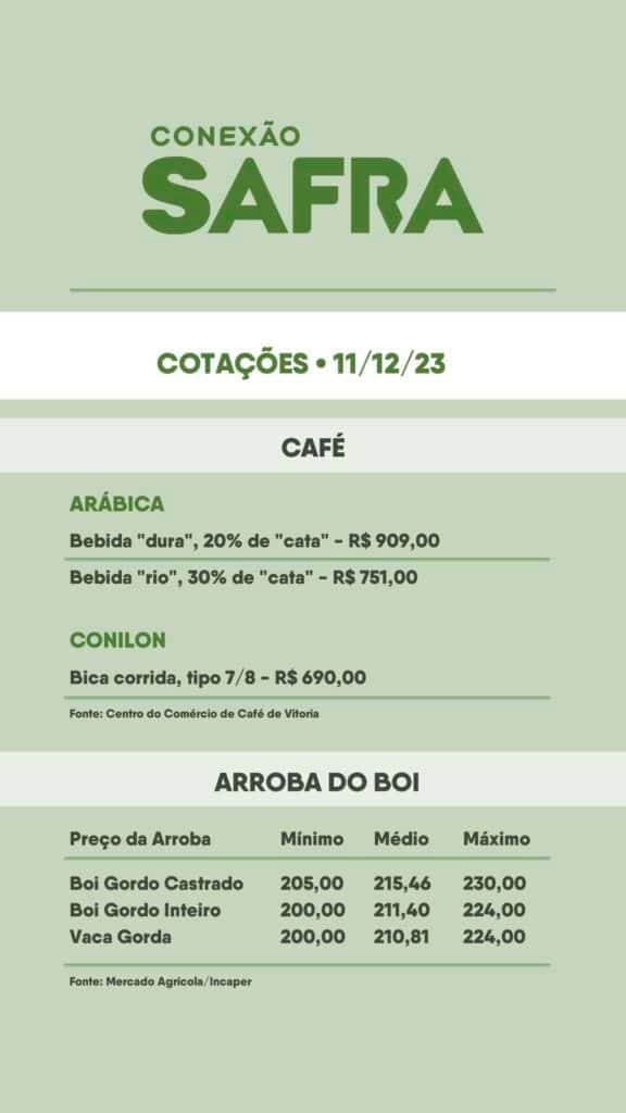 Confira as cotações do café, boi e hortifruti de hoje (11/12), com variações significativas que podem impactar produtores e consumidores.
