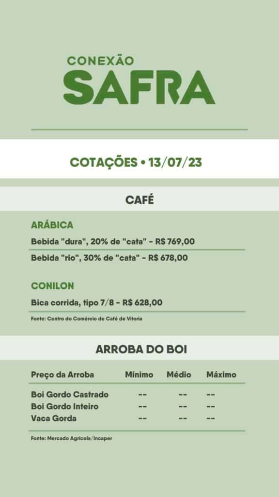 Confira as cotações do café, boi e hortifruti de hoje (13/07), com variações significativas que podem impactar produtores e consumidores.