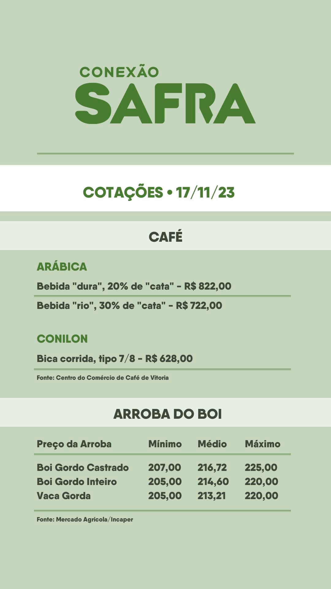 Confira as cotações do café, boi e hortifruti de hoje (17/11), com variações significativas que podem impactar produtores e consumidores.