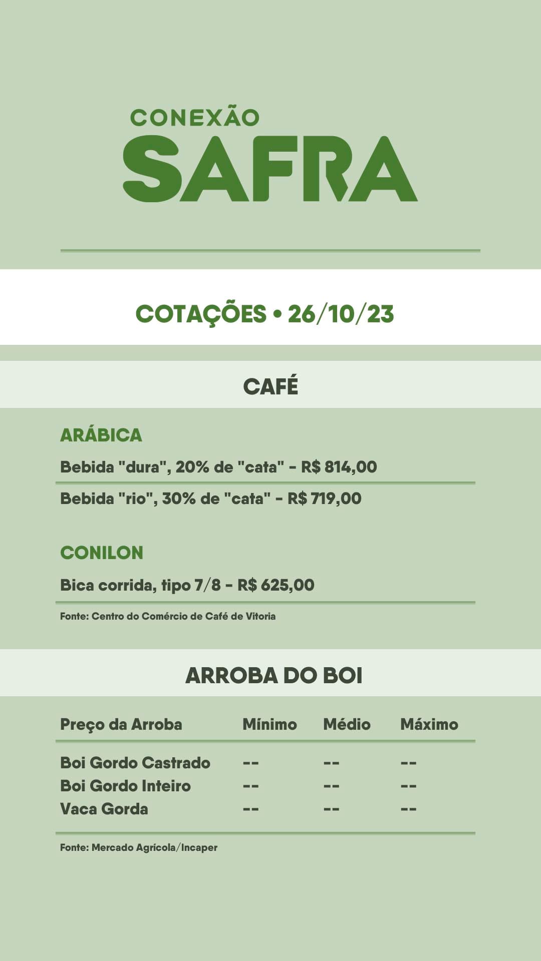 Confira as cotações do café, boi e hortifruti de hoje (26/10), com variações significativas que podem impactar produtores e consumidores.