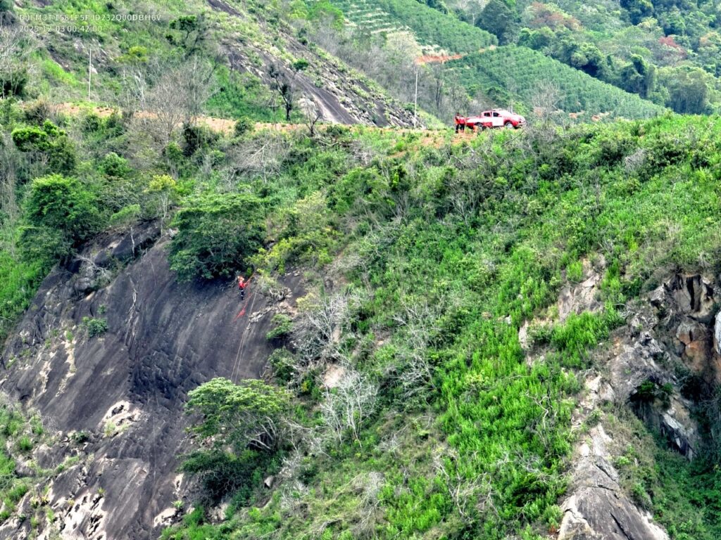 Na segunda-feira (1°), o Corpo de Bombeiros de Ibatiba prestou apoio à ocorrência. Após avaliação da área, a guarnição constatou que não havia meios adequados para execução segura da operação. No dia seguinte, uma equipe especializada do Corpo de Bombeiros de Vitória chegou ao município para assumir o resgate.
