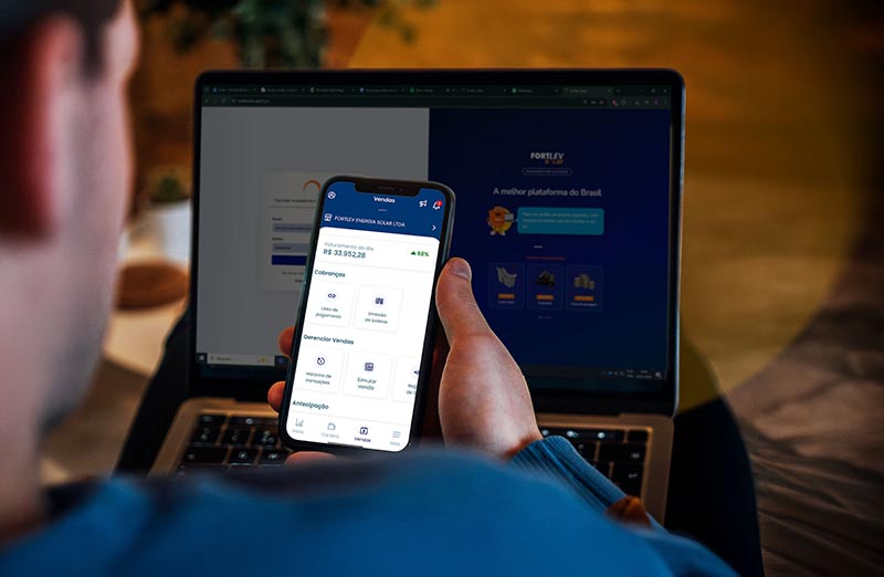 Solução digital que transforma o celular em máquina de cartão de crédito. Permite transações rápidas e seguras, sem necessidade de equipamentos adicionais, e possibilita parcelamento em até 18 vezes, conforme limite do cliente. Um de seus diferenciais é o split de pagamento: em uma única venda, o integrador distribui o que é dele e o que é da Fortlev Solar.
