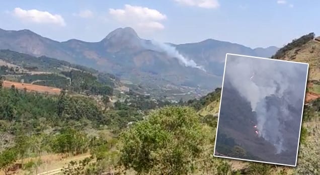 Um incêndio de grandes proporções atingiu o Parque Nacional do Caparaó, em Pedra Menina, distrito de Dores do Rio Preto, no início da tarde desta terça-feira (21). De acordo com informações do Corpo de Bombeiros, ainda não é possível precisar a área da queimada. A região onde está o fogo é de difícil acesso, o que dificulta o trabalho da equipe no combate ao incêndio.