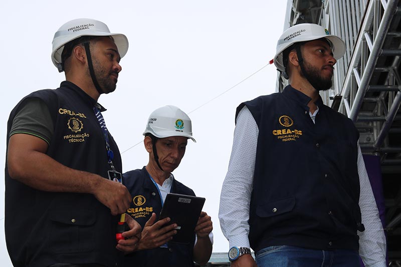 De acordo com o presidente do Crea-ES, engenheiro Jorge Silva, as estruturas estão sendo analisadas detalhadamente pelas equipes técnicas. “Estamos verificando todas as estruturas e sistemas. Algumas ainda necessitam de ajustes e reparos, o que é normal nesta fase de montagem, mas os serviços executados até o momento estão de acordo com os projetos apresentados”, destacou.