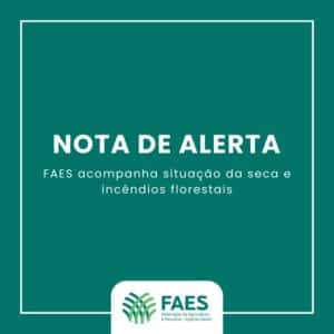 A Federação da Agricultura e Pecuária do Estado do Espírito Santo (Faes) emitiu um comunicado onde informa que monitora com atenção e preocupação os impactos da estiagem no Estado, que tem favorecido a propagação de incêndios florestais em diversos municípios capixabas. A situação exige alerta especial aos produtores rurais, diz a nota. Embora o número […]