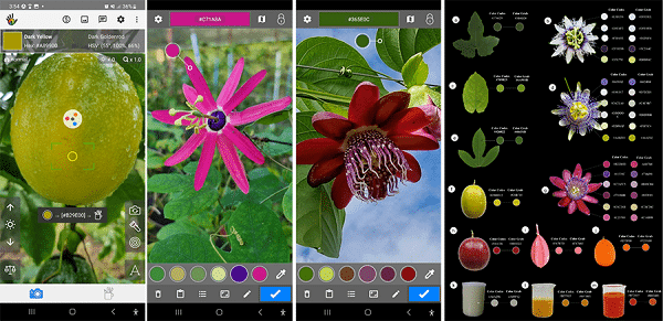 “Substituímos a paleta, aquele livrinho que traz a descrição de cores, pelo aplicativo. Imagina você ir para o campo com o livrinho e fazer isso em um universo de mil plantas? Além de perder muito tempo, é subjetivo. Sempre vai haver dúvida de qual cor da paleta usar para a característica em questão. Com o aplicativo, não. Você clica na imagem e automaticamente ele detecta a cor exata e fornece o código preciso”, detalha Nunes. Foram avaliados 132 genótipos de Passiflora do Banco Ativo de Germoplasma (BAG) de Maracujazeiro da Embrapa Mandioca e Fruticultura.