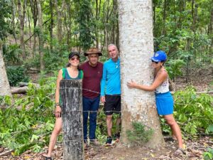 O vínculo da família com os butiazais é marcado por história e afeto. Carmen recorda que, quando sua mãe tinha apenas quatro anos, uma nuvem de gafanhotos devastou a propriedade e apenas os butiás resistiram. “Desde então, meu avô dizia que era uma árvore santa”, relembra. A relação atravessou gerações e hoje a fazenda mantém a integração entre gado e butiazal, em um manejo que respeita os ciclos naturais. No inverno, o rebanho é retirado das áreas de butiás, evitando o impacto nas árvores jovens e permitindo a regeneração natural do campo.