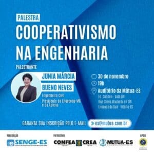 Acontece nesta quarta-feira, 30, às 19, no auditório da Mútua, a palestra Cooperativismo na Engenharia.
