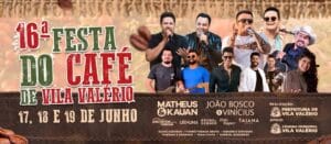 A 16ª Festa do Café de Vila Valério, no Noroeste do Espírito Santo, acontecerá de 17 a 19 de junho, numa realização da Prefeitura e da Câmara municipais de Vila Valério