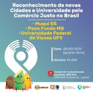 Nesta quarta-feira (09), às 16h, acontece a live de reconhecimento das novas Cidades e Universidades pelo Comércio Justo no Brasil.