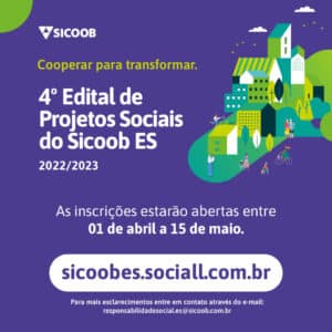 Teve início no dia 1º de abril e segue até o dia 15 de maio as inscrições para o 4º Edital de Projetos Sociais do Sicoob ES.
