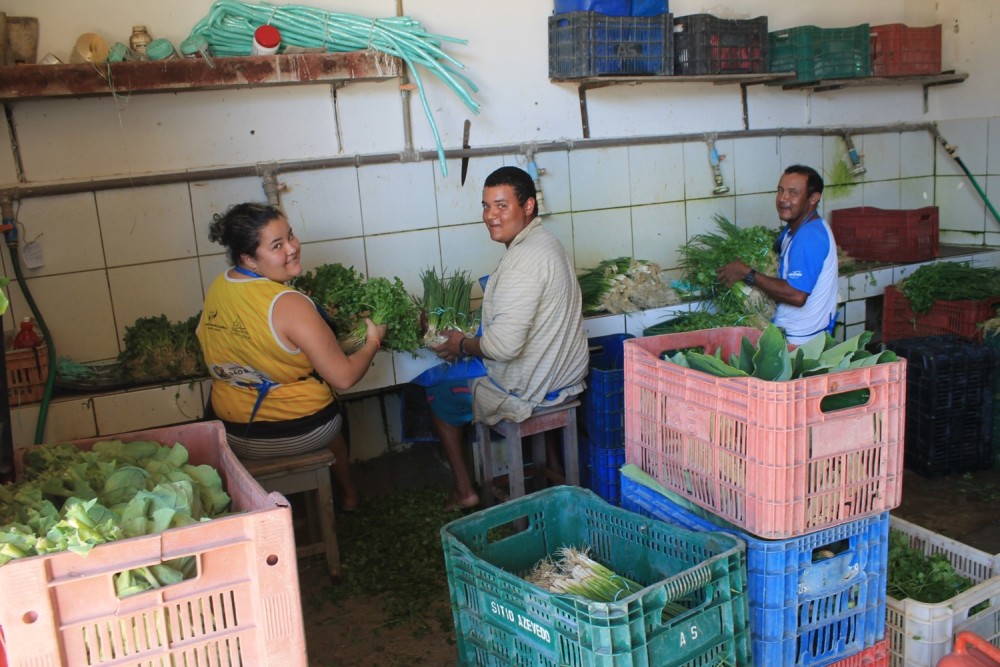 Toda semana são colhidos cerca de 2.500 pés de alface, 3.500 unidades de tempero verde, entre cebolinha, coentro e salsa, e em média mil amarrados de couve. Além de brócolis, couve-flor, rúcula e taioba, quando estão em época de colheita. Coentro, salsa, cebolinha, alface, taioba e brócolis são produzidos durante todo ano. Já a couve e a rúcula, só nos períodos mais frescos.