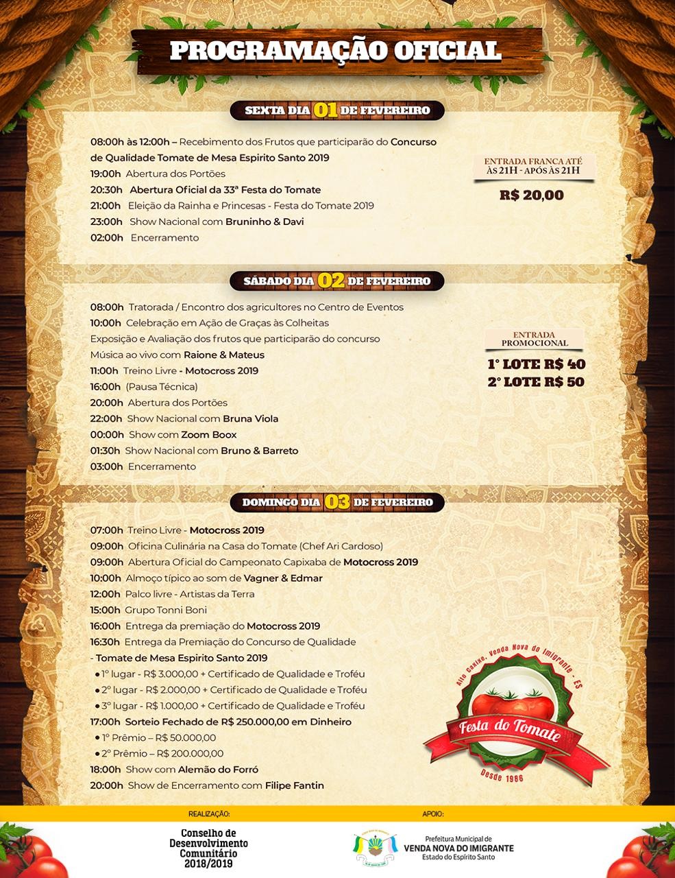 Independentemente da situação do mercado, o tomate será sempre motivo de festa em Alto Caxixe. A 33ª Festa do Tomate está marcada para os dias 1, 2 e 3 de fevereiro no Centro de Eventos “Tomatão ” (Confira programação abaixo). Como ocorre desde sua primeira edição, o evento comemora a época da colheita da fruta que trouxe projeção à região.